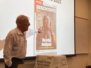 The second in our series of activities grant funded events was a lecture by UA History Professor Emeritus, Dr. Roger Nichols, on how several 19th Century artists depicted Native Americans. He showed a series of images from different artists’ work that illustrated diversity of dress and housing, as well as ceremonies and historic events featuring members of different Native Tribes. Dr. Nichols is an Affiliate Member of the UA American Studies Department and in 2020 received the Lifetime Achievement Award from the Western History Association. He is a four time Fulbright recipient. The lecture took place in Tucson on April 26, 2023 and was attended by 14, including a Fulbright Visiting Student and a Fulbrighter from Phoenix and her spouse.